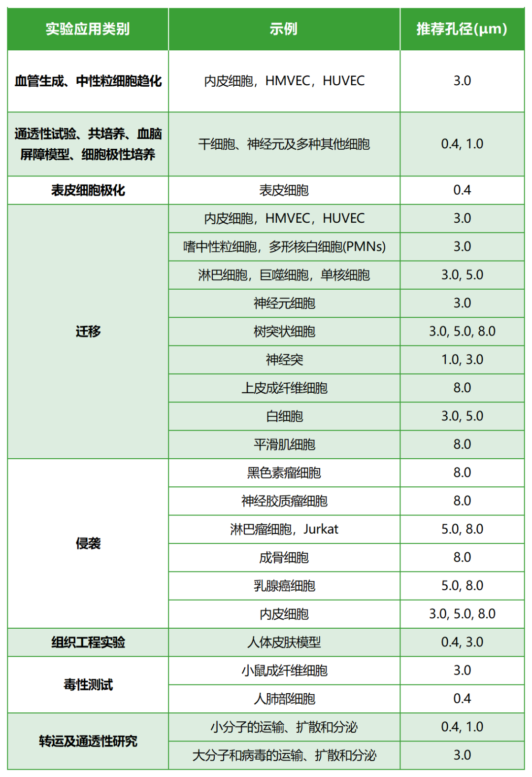 膜孔径:0.1μm 0.4μm 1.0μm 3.0μm 5.0μm 8.0μm 12.0μm